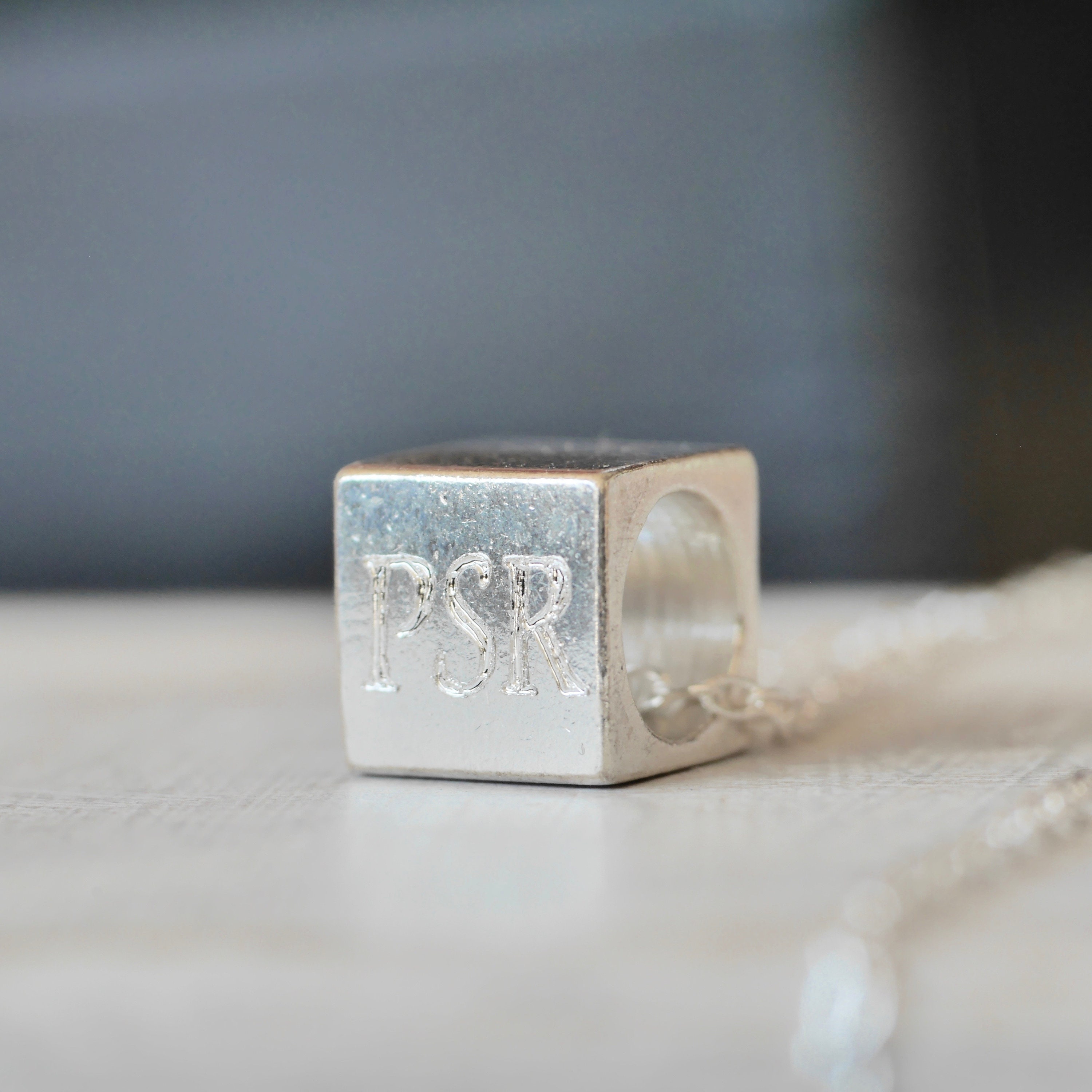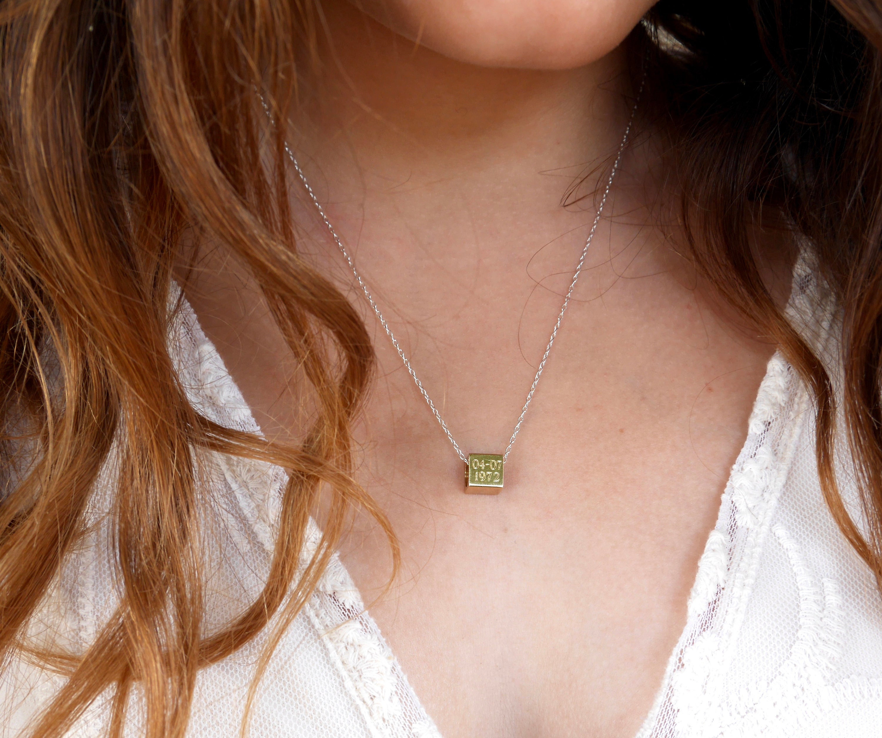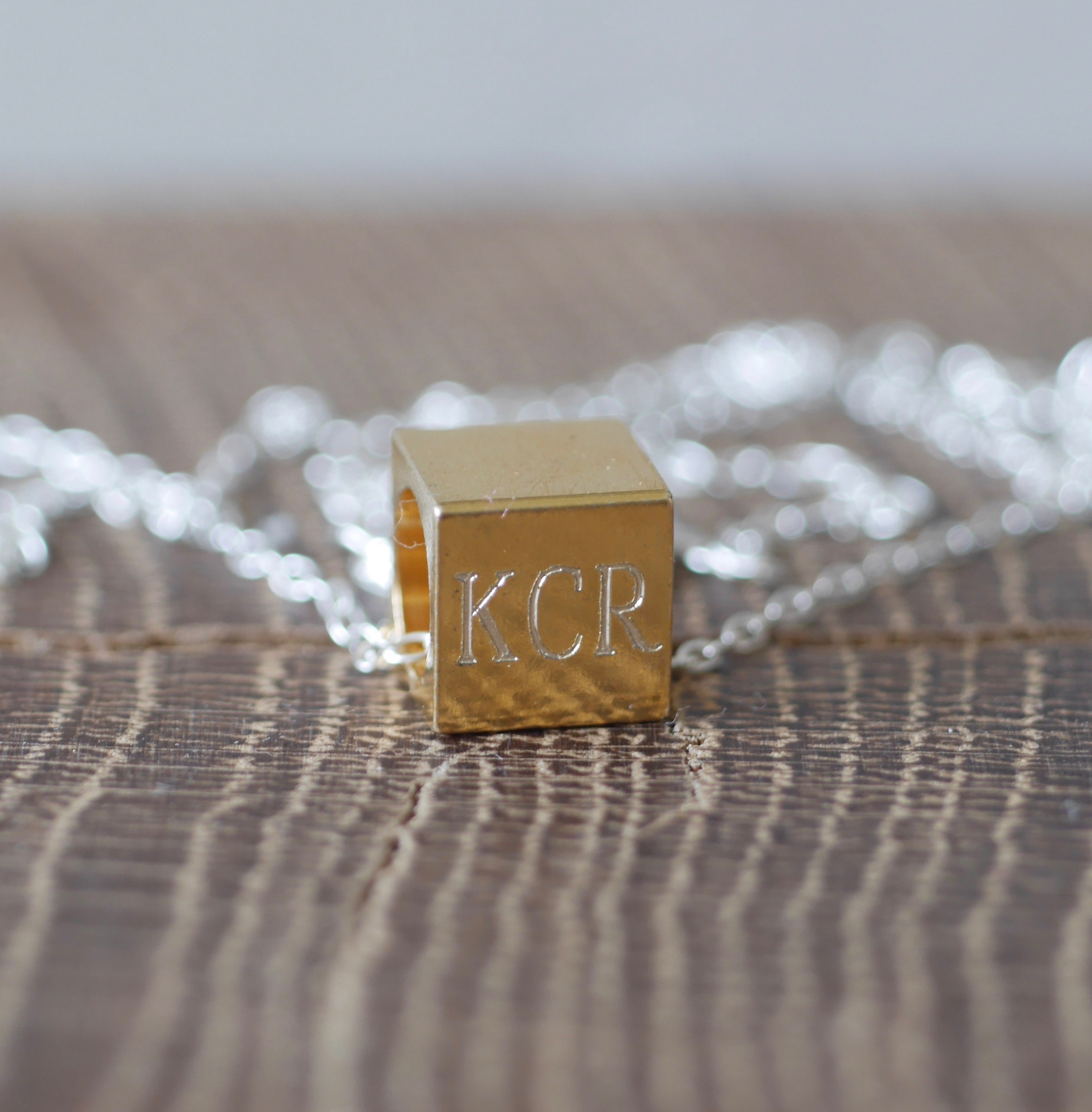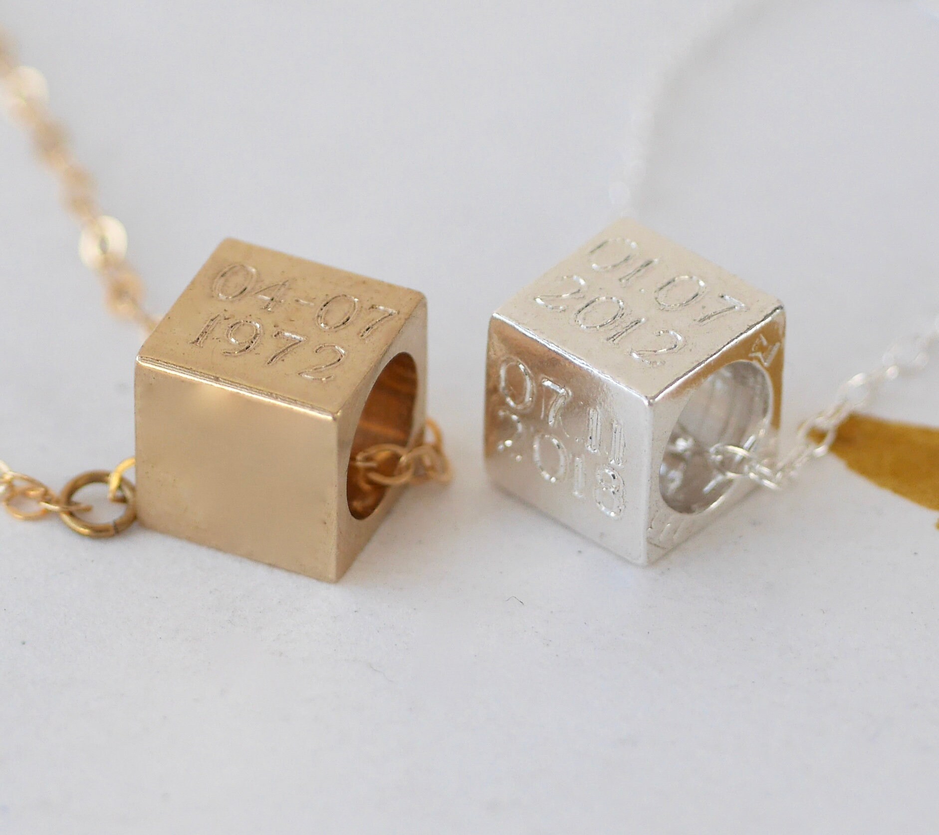 Personalised Gold Silver Delicate Necklace. Engraved Dainty Cube Necklace Gold and Silver.