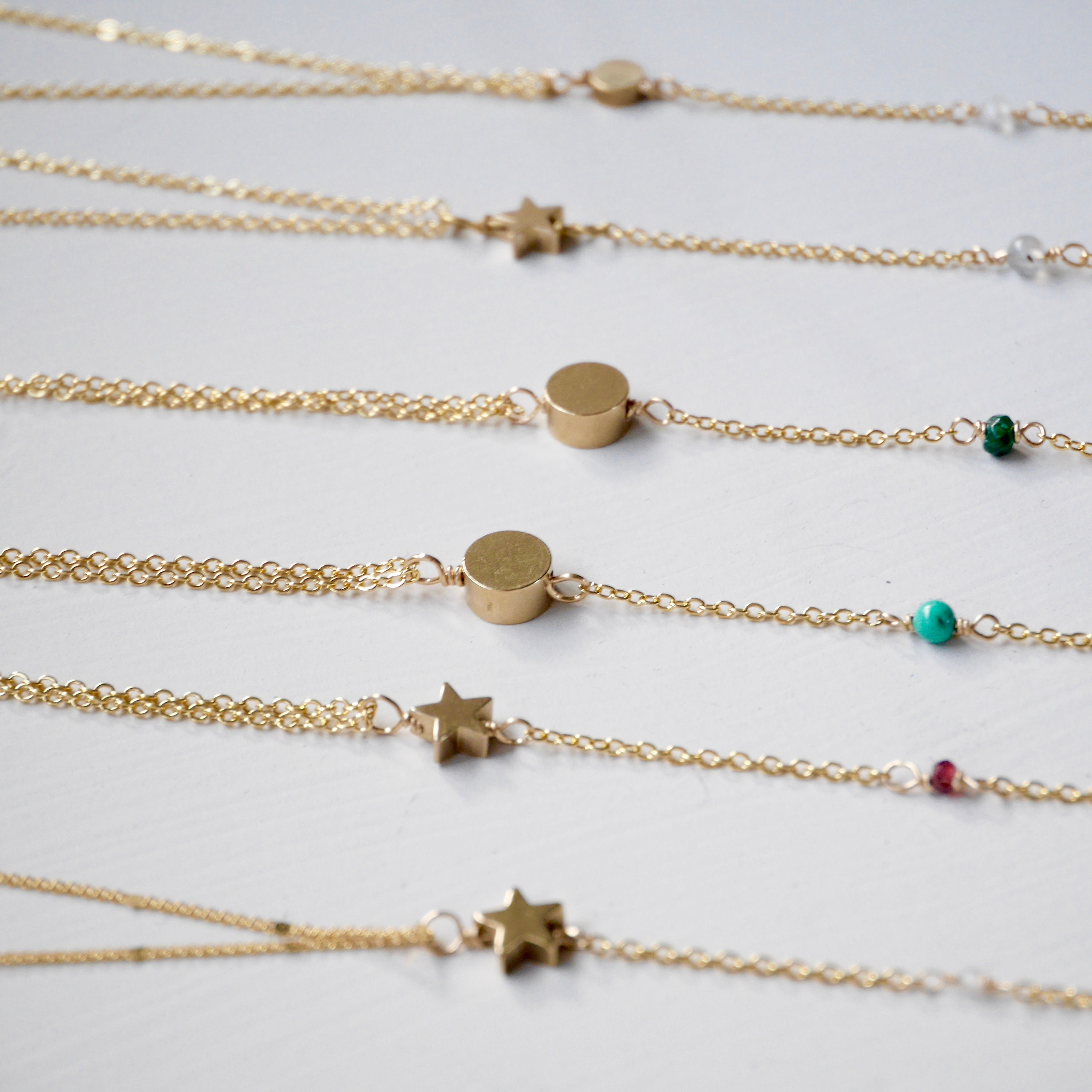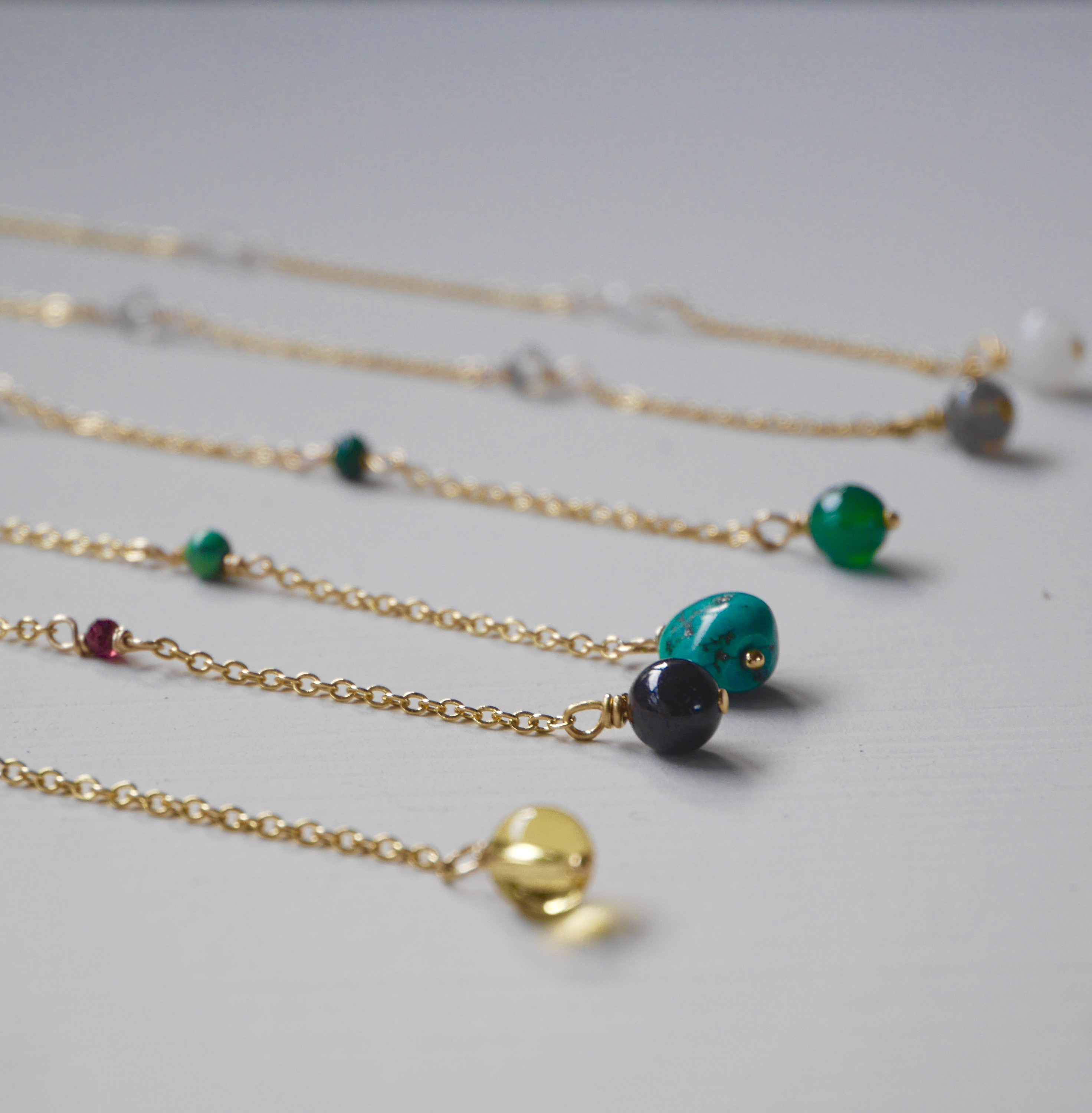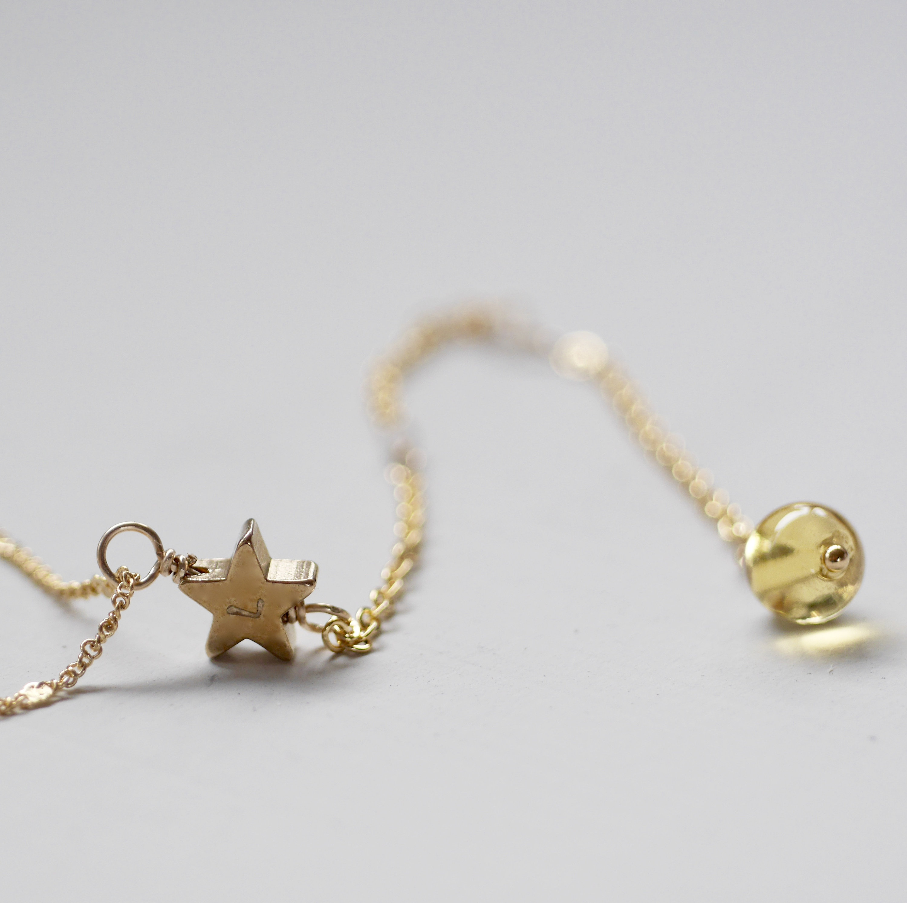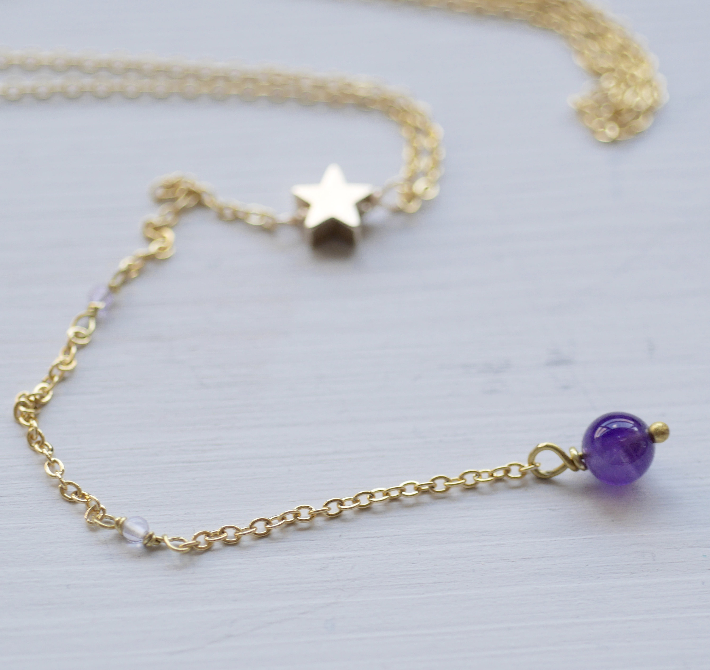 A beautiful and delicate personalised birthstone long gold Y necklace. This gold Y necklace offers carefully selected birthstones and a personalised star or round charm with an initial on it.