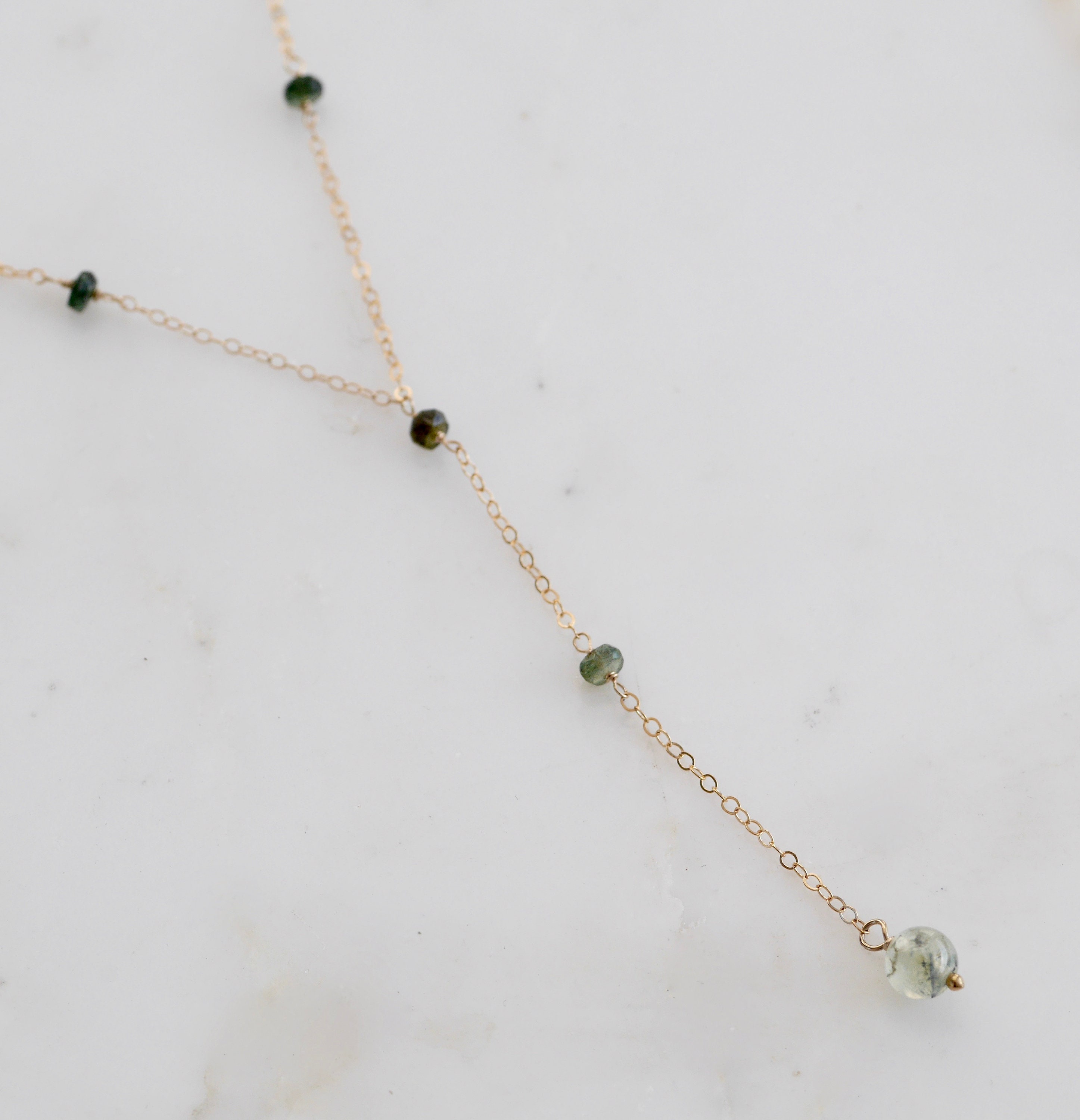 Alchemy Earth Symbol necklace with Peridot and prehnite august birthstone Y necklace choice of gold filled or sterling silver finish. This symbolic necklace is a great gift idea for August born recipients or for whom loves natures and alchemy.