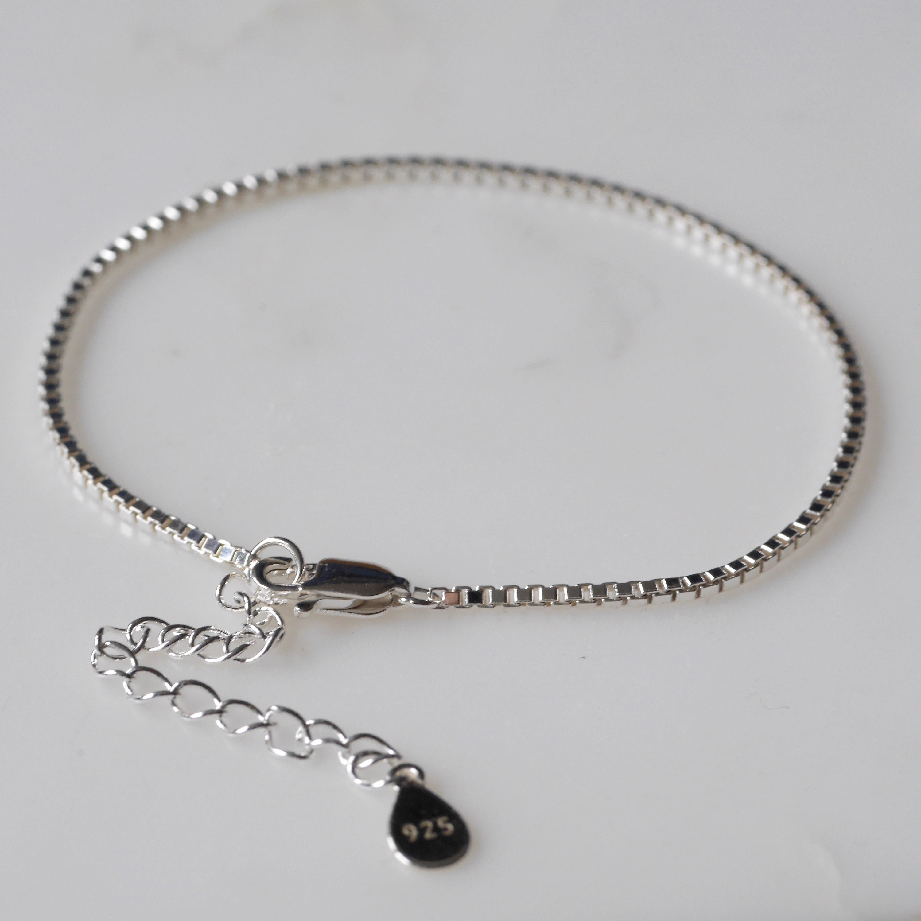 Sterling Silver Box Chain Delicate Bracelet for her. Great minimalist bracelet for the persona who loves simple, minimal design.