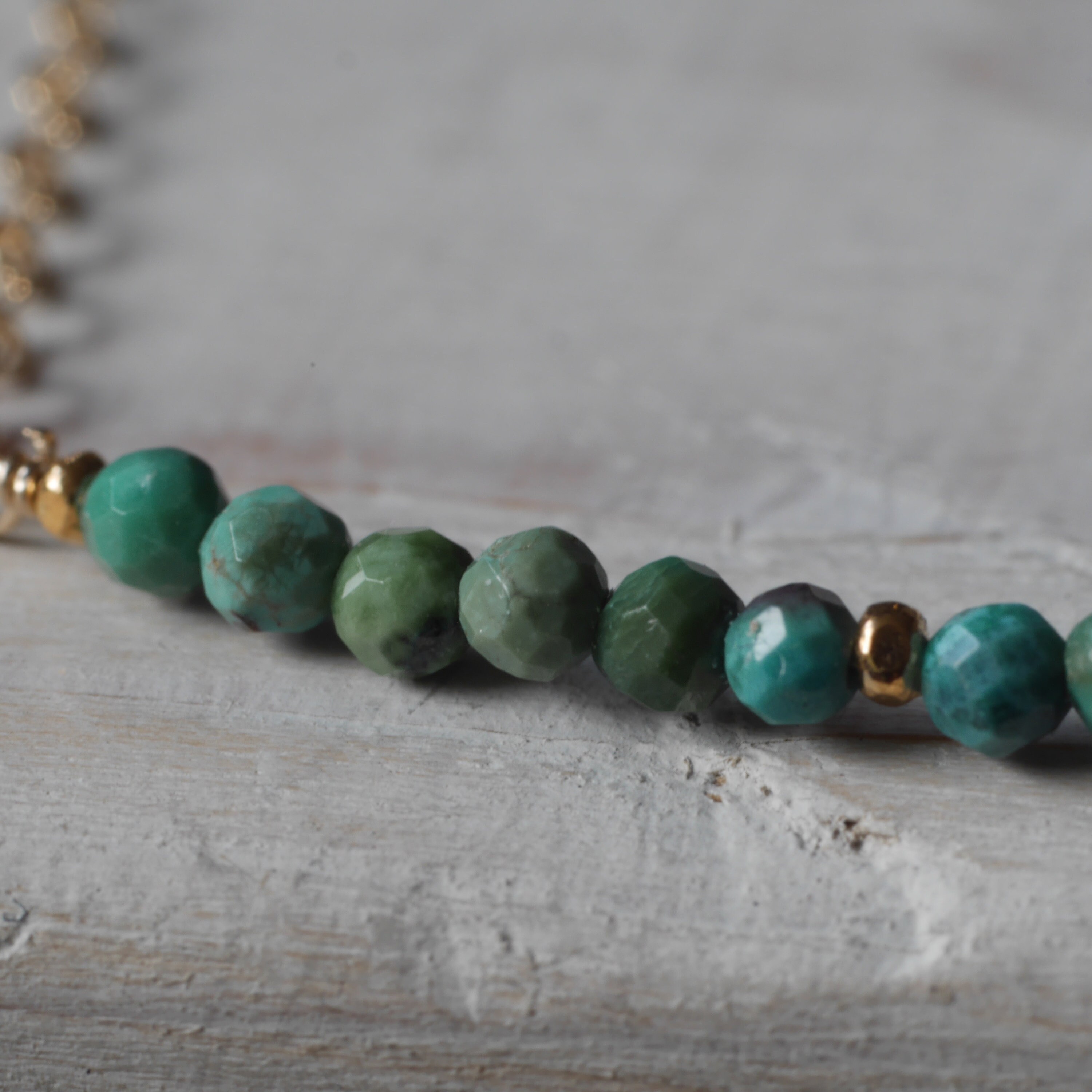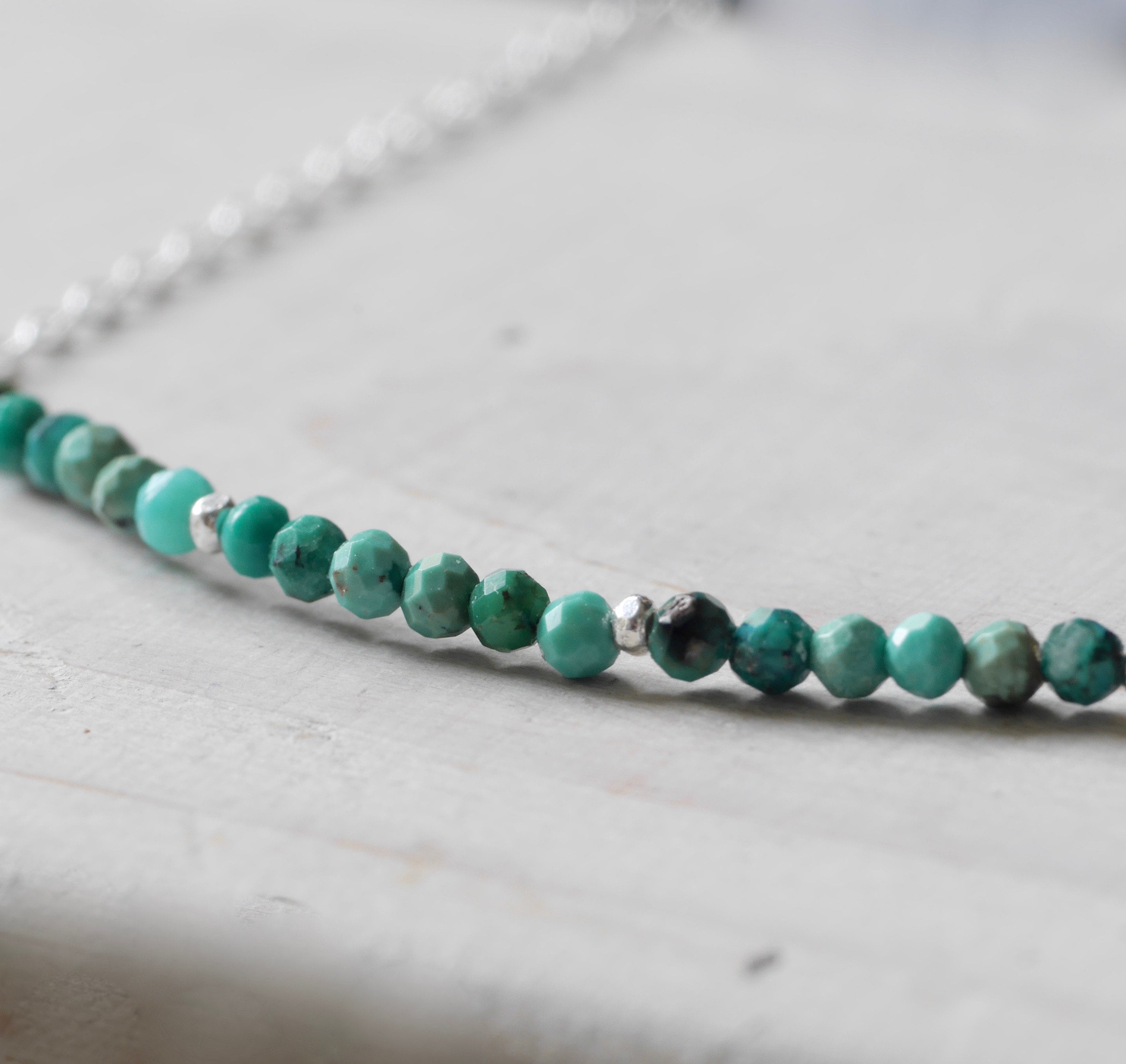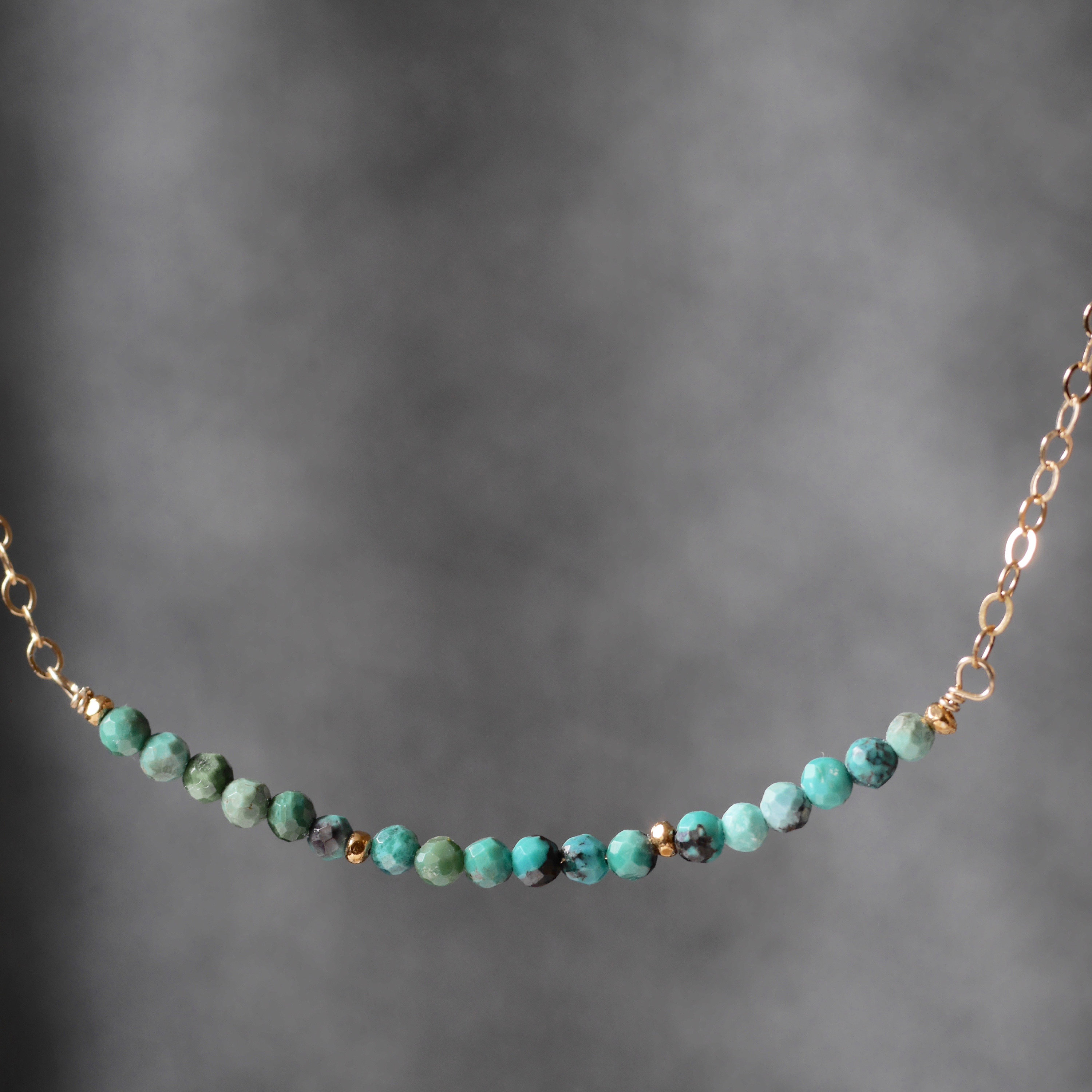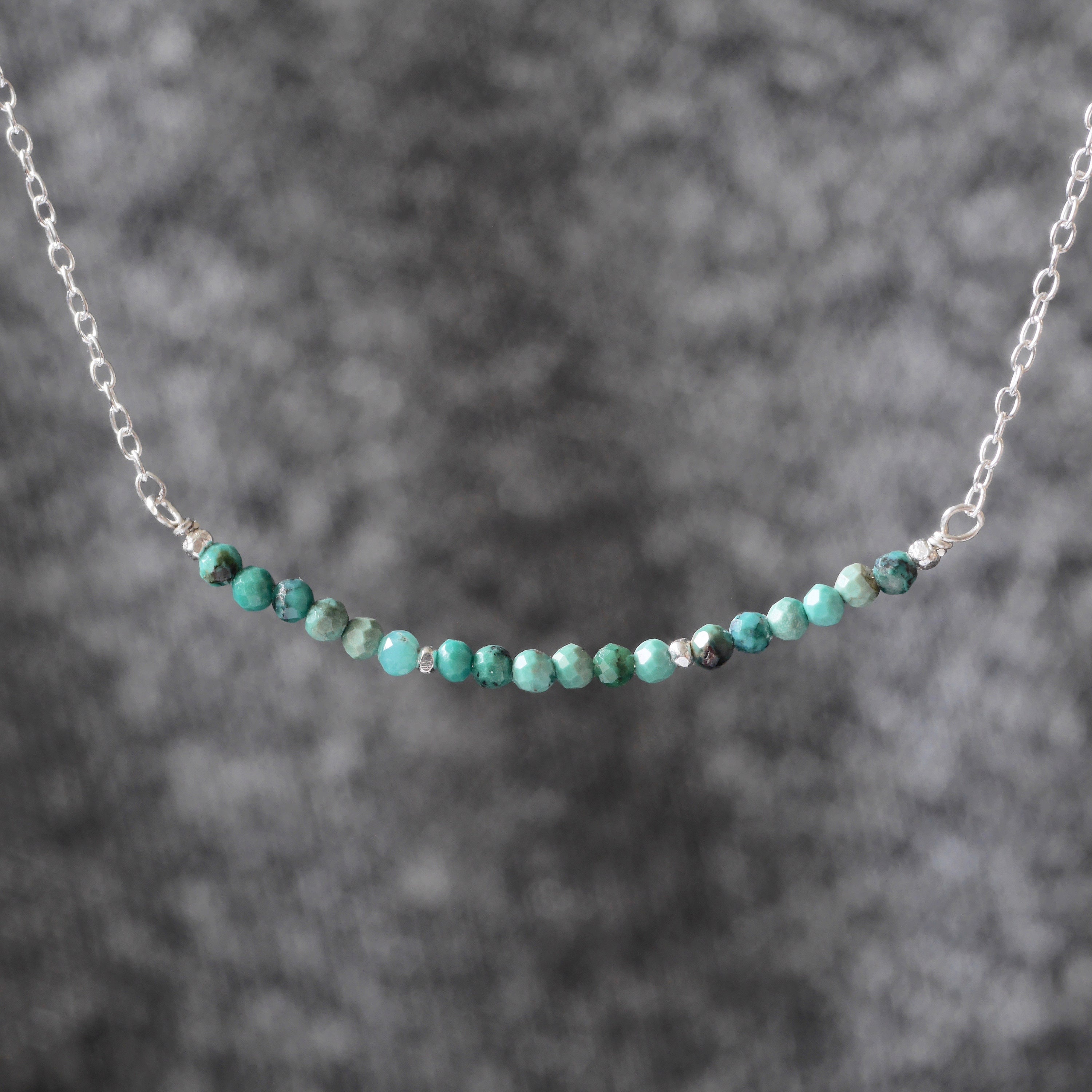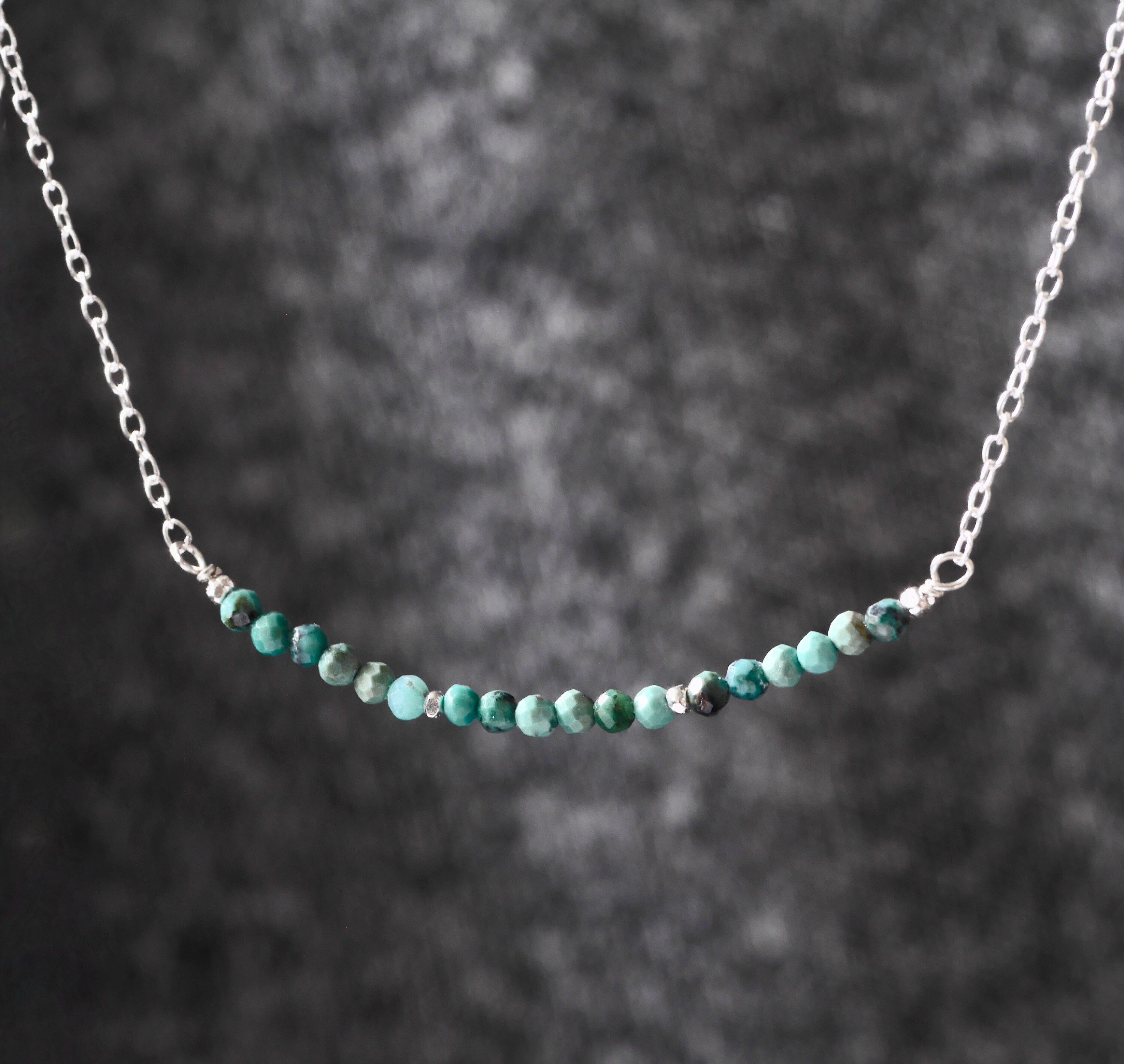 December birthstone turquoise genuine gemstone bar necklace in silver and gold-filled.