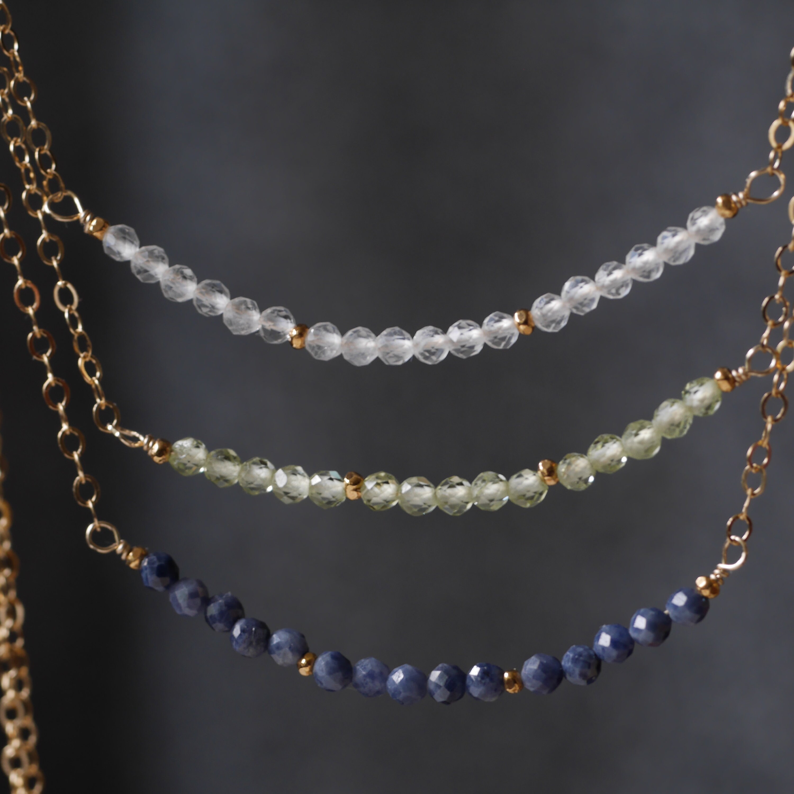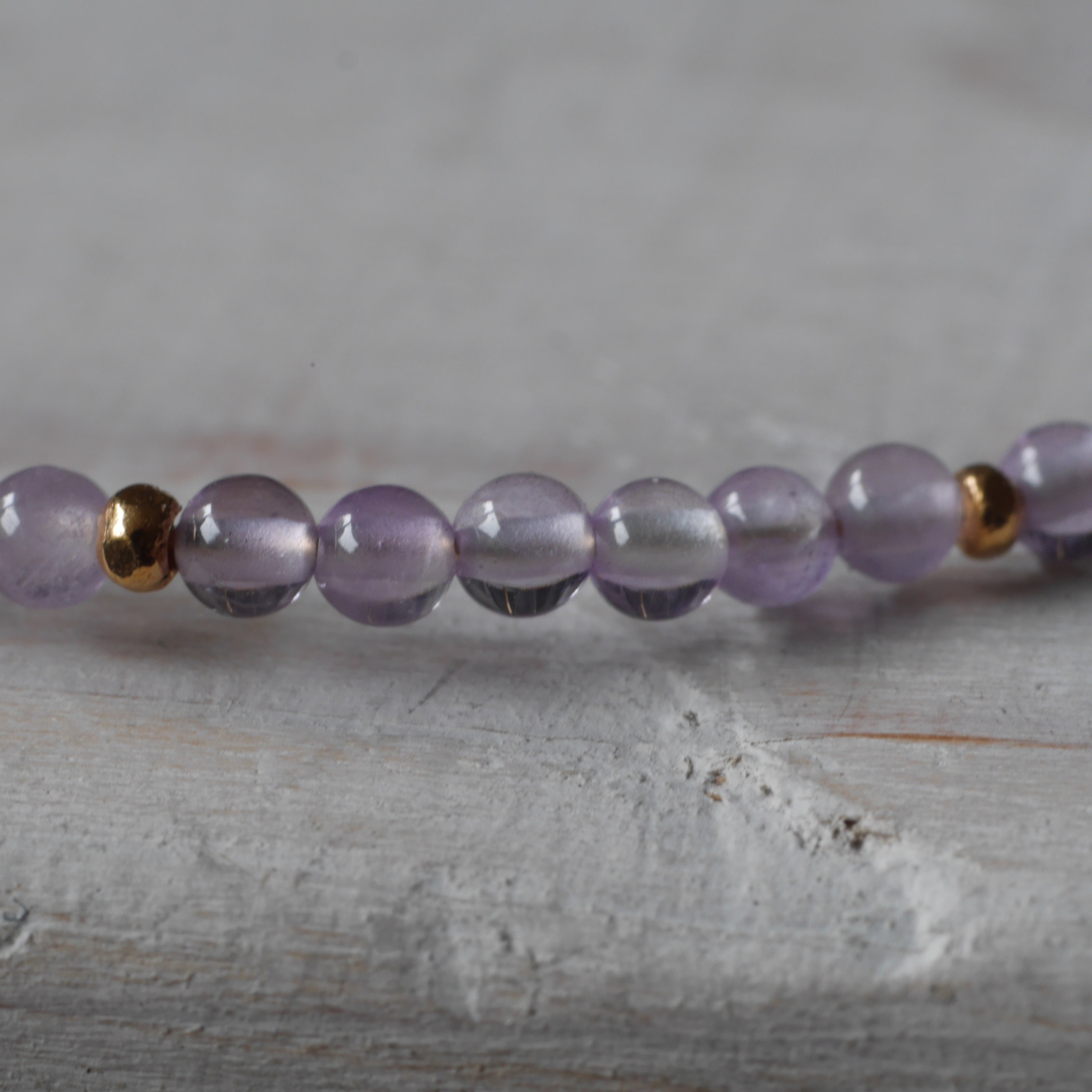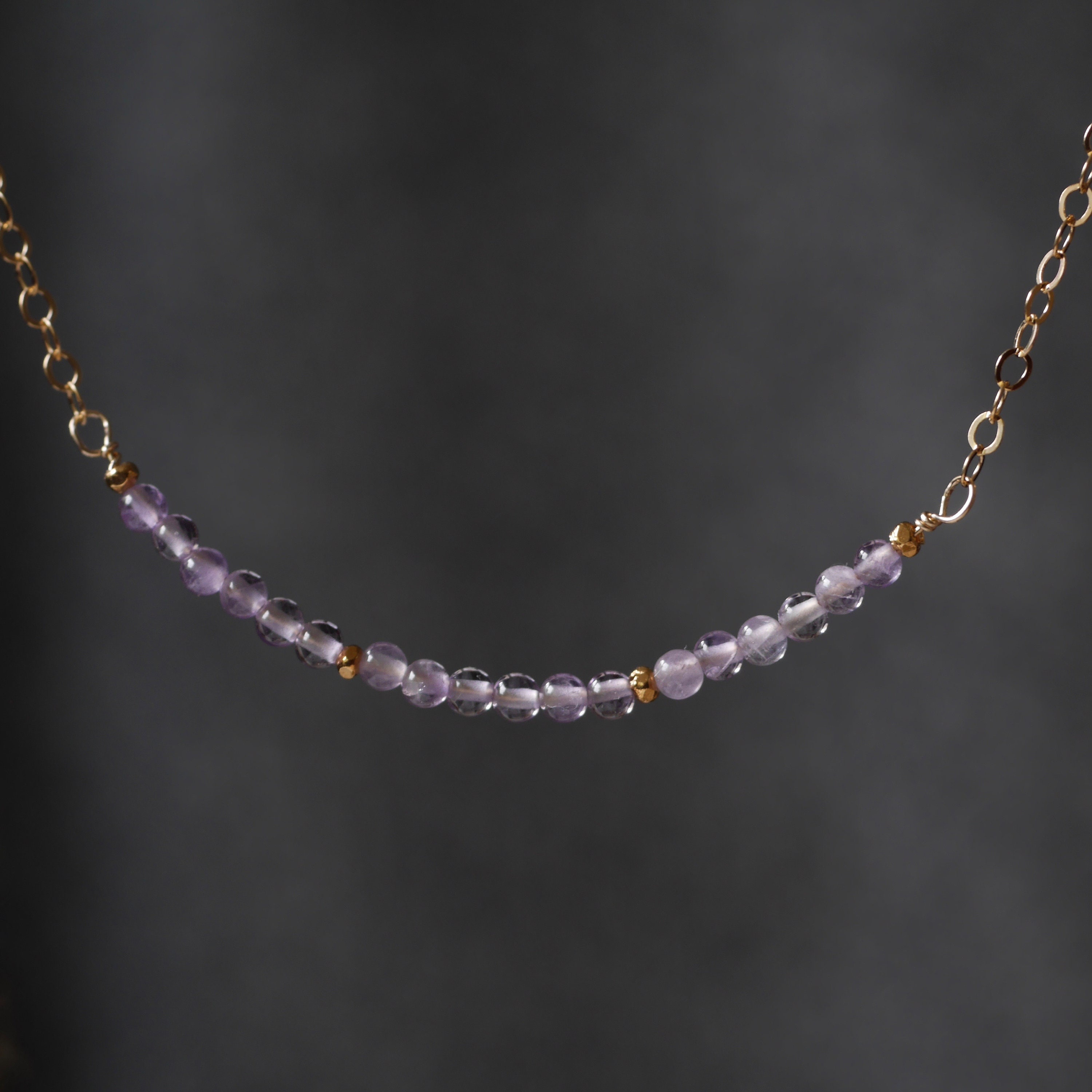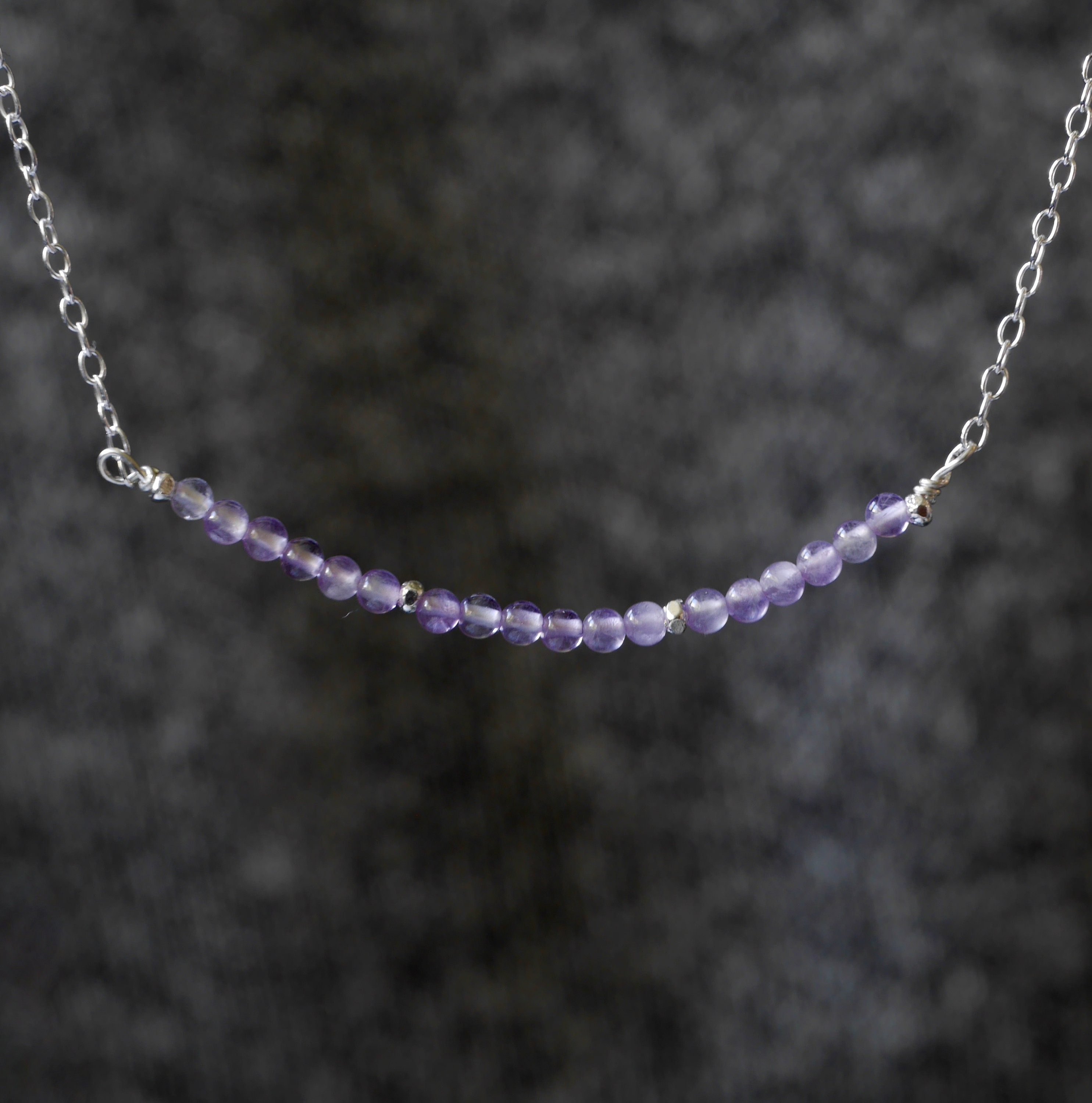 February Birthstone Beaded Amethyst Delicate Gemstone Necklace in Gold and Silver.