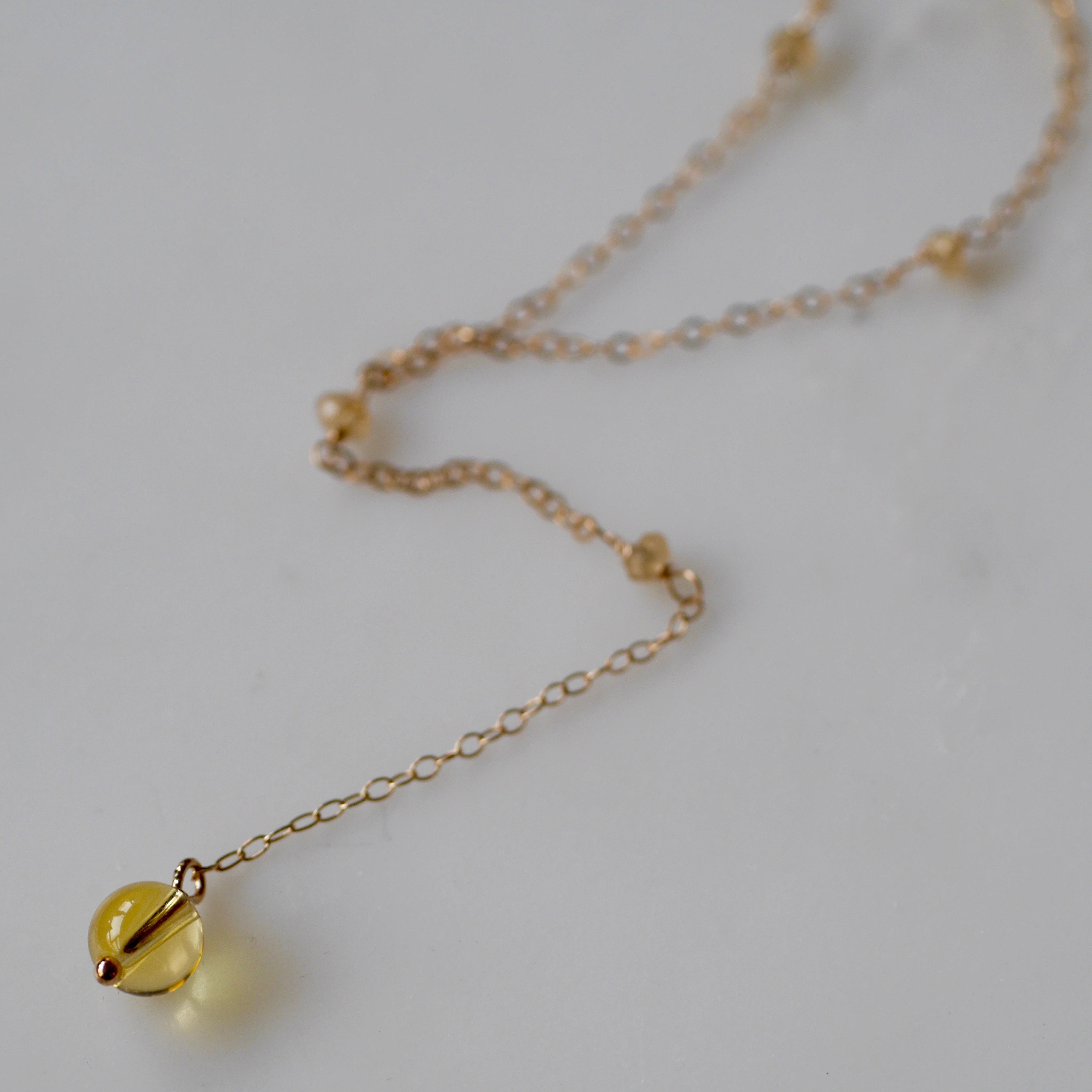 November Birthstone Citrine Y Necklace choice of gold-filled, Sterling silver and 9-carat yellow gold finish.
