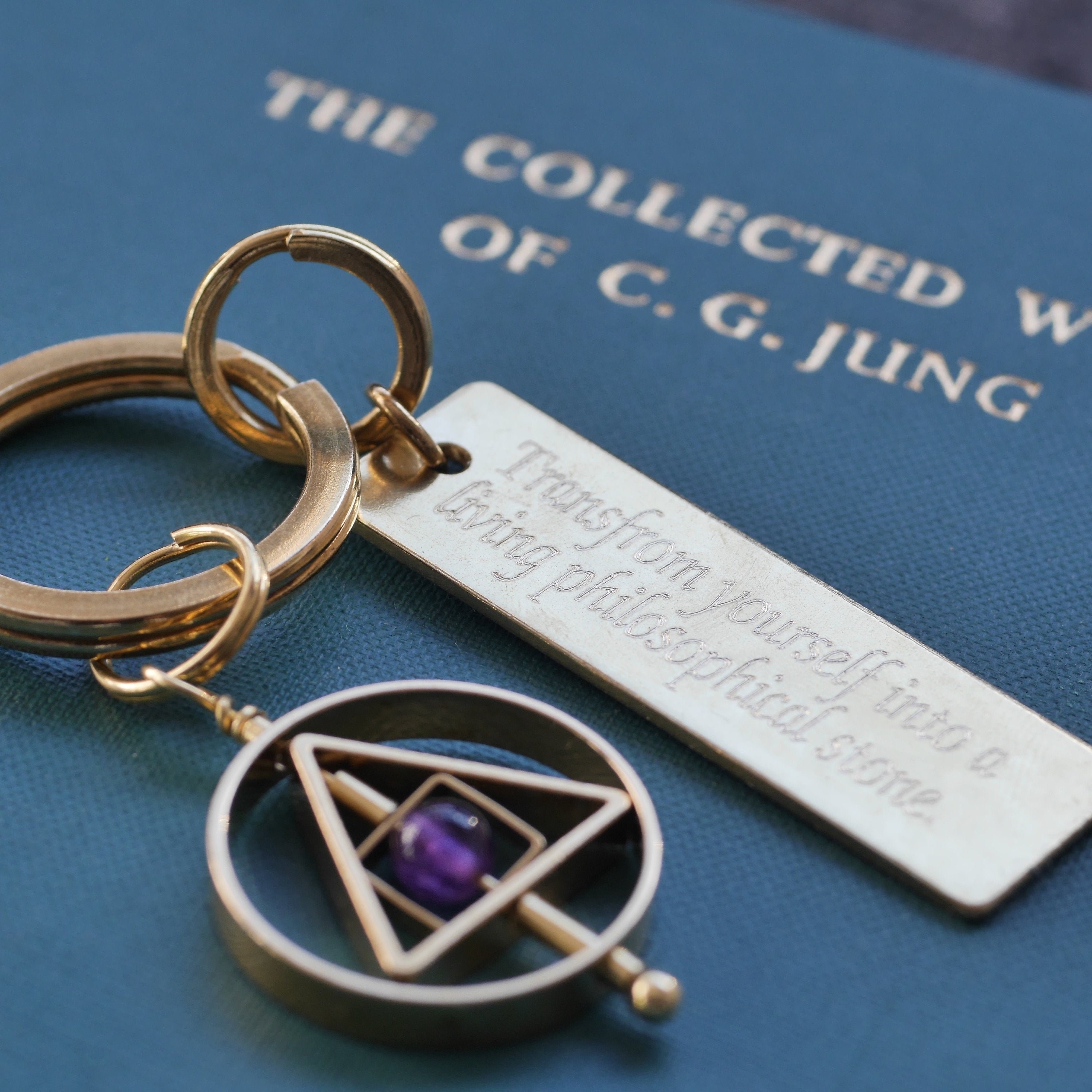 Raw brass Alchemy Philosopher's Stone Jungian Psychology, Personalised Keyring Unisex Birthday Gift - Meaningful Gift, Graduation Gift etc...