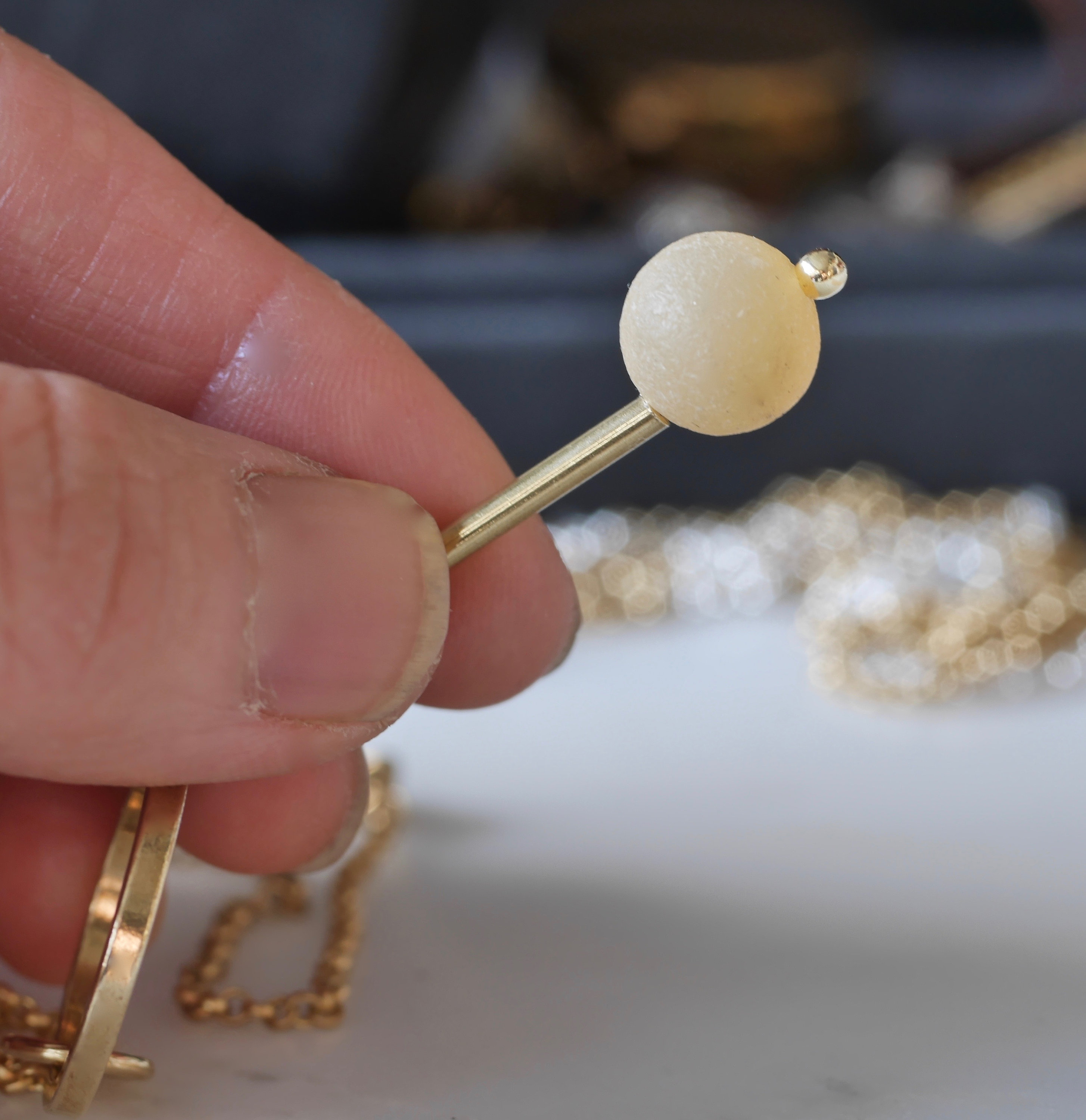 I am sensitive to smell but also enjoy simple smells that come from natural sources and always wanted to make jewellery that releases a beautiful smell. I also love making jewellery can be interactive and activate one of your senses. This Frankincense resin Necklace combines both my wishes-releasing an earthy beautiful natural scent and thought provoking. I hope you will like the necklace and the beautiful smell that our mother nature provides.